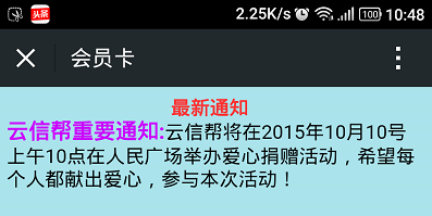 2 ) 在手机会员卡端点击最新通知则可查看通知,如图所示: