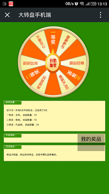 参与手机端的抽奖活动页面:
